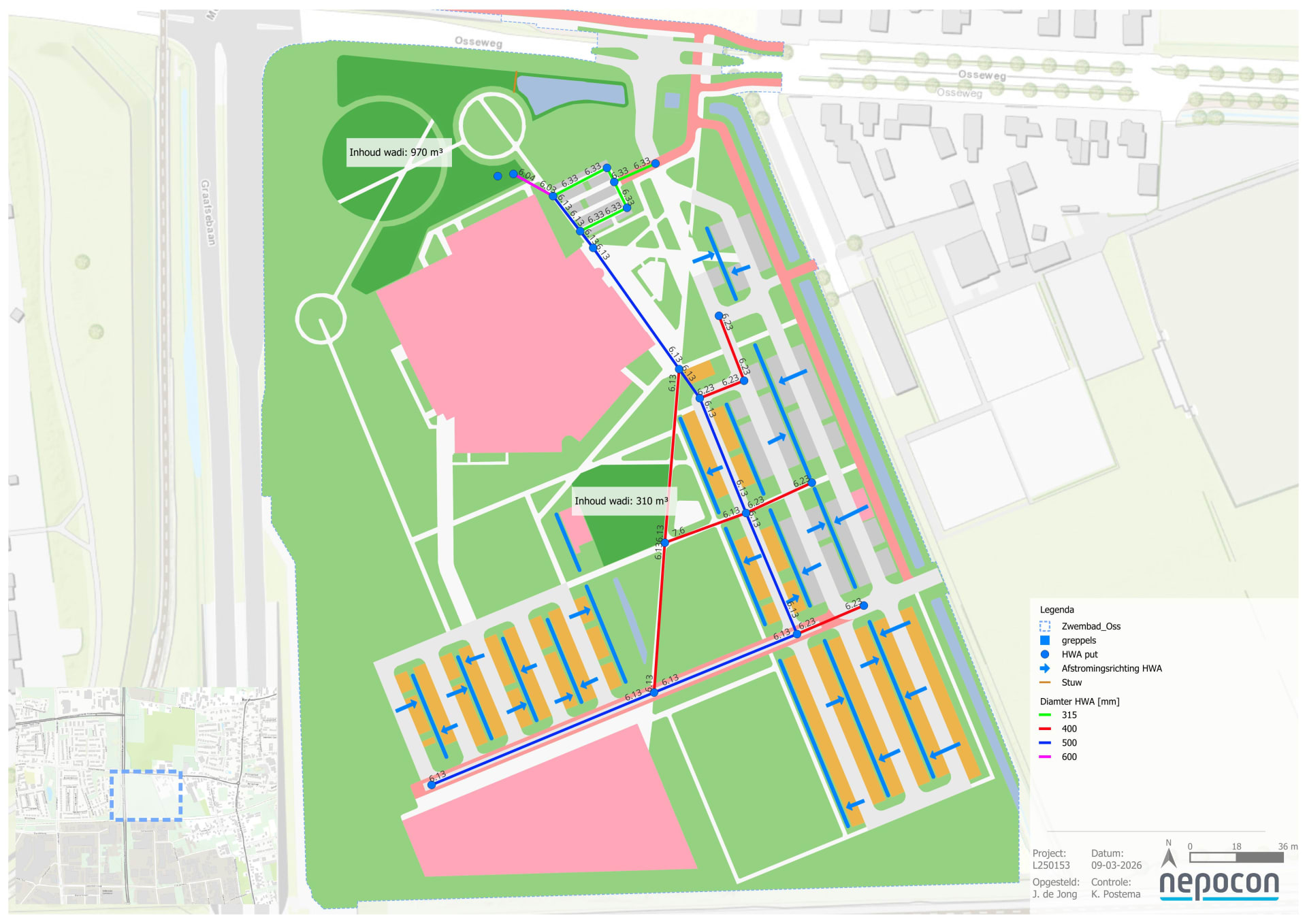 Een project waar Jules met plezier aan werkt is de herontwikkeling rondom een nieuw zwembad in Oss. “Daar mogen we zelf de riolering en waterberging ontwerpen. Je hebt dan veel vrijheid in hoe je zo’n gebied inricht. Dat maakt het leuk, omdat je echt meedenkt over hoe een plek klimaatbestendig wordt.”
